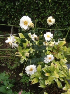 また、うちの花。八重インパチェンス・カリフォルニアローズ。黄色い小菊。正月の切花を挿したら根付いたのです。まだ蕾がたくさんあります。トレニア。紫式部。主人に剪定されて、みんな花を切られましたが、その後、これだけ咲いて実をつけました。手前は、オクラ・ベニー。秋明菊。手前は、白粉花。奥は、オキザリス。オキザリス。