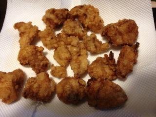 今日の夕食は、鶏の唐揚げ。義母が肉が食べたいと言うので。唐揚げ粉を水に溶かしてつけるタイプにしたら、サクサク!サラダ。春雨サラダ。サーモンの刺身。切り落としですが・・・豆腐とワカメの味噌汁。