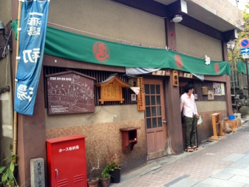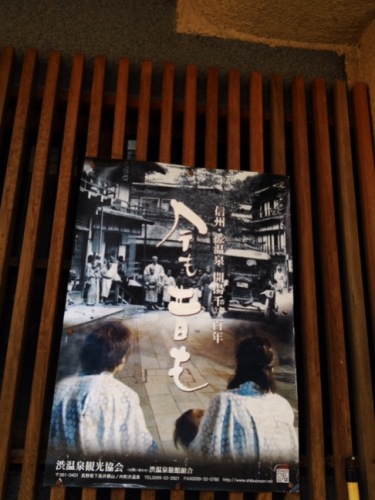 渋温泉街散策してます。初湯。名僧行基が最初に発見した温泉らしい。「千と千尋の神隠し」のモデルの旅館があると聞いて渋温泉街に来たのです。 歴史の宿「金具屋」。 門が開いてないので廃業してしまったのかと思ったら、灯りも点いてる。庭も広い。この門は今使われていないだけのよう。千と千尋の神隠しのモデルの斉月楼。説明が駐車場に。昔の写真も駐車場に飾ってあります。駐車場で記念撮影。