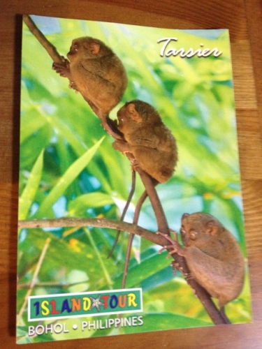 3月から7月まで東南アジア旅行に行ってる次女ミンミから、絵葉書が届きました。フィリピンのボホール島からですが、投函が4月16日で、今はもうインドネシアのバリ島に着いたらしい。絵葉書は、フィリピン・ボホール島に生息する世界最小のメガネザル・ターシャの写真です。手のひらサイズだそう・・・チョコレートヒルも行ったそうで調べてみました。楽しそうで良かった。セブ島で英語も1カ月習ったから、少し話せるようになったかな?