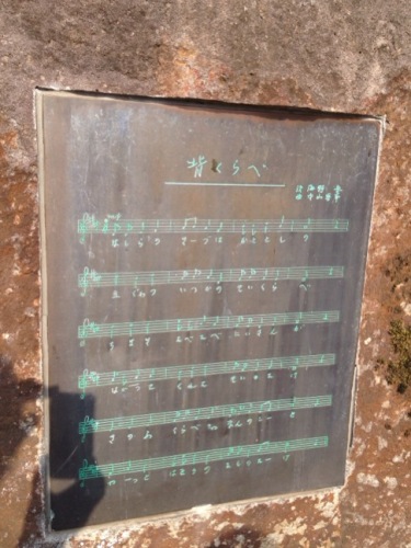 信州中野駅前に童謡「肩たたき」の像があります。主人が2008年頃の朝日新聞の記事を見てから、 ずっと来たかったと言うので、一泊旅行で来ました。 「肩たたき」を作曲したのは信州中野出身の中山晋平です。 肩たたきの像と私。こんな風に肩たたきしてもらいたいですね。信州中野駅の目の前にあります。歩いてるのは主人。次に中山晋平記念館に行きました。アーチの鐘で、中山晋平作曲の歌を奏でるそう。中山晋平の像。童謡「證城寺の狸囃子」と「シャボン玉」を合わせて? 狸の口からシャボン玉が出てきます。 記念館でスライド上映を見た後、中山晋平作曲の歌をオルガンの伴奏で歌えると聞き、「カチューシャの唄」、「ゴンドラの唄」を歌わせてもらいました。 島村抱月に依頼されて松井須磨子が劇中で歌った曲です。 「ゴンドラの唄」の「いざ燃ゆる頬を」を間違えたので、楽譜をパチリ。 教会の父の日コンサートで「ゴンドラの唄」を歌う予定なので。 後で売店で楽譜買ったけど、童謡とカチューシャの唄だけしか入ってなかったですね。シャボン玉の像と私。中野小唄の歌碑。
