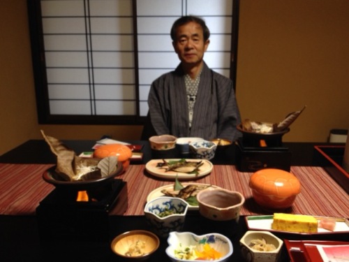 湯田中温泉郷・安代温泉の和風の宿ますやの朝食。昨夜夕飯を食べた個室でまた朝食も食べました。部屋食みたいで落ち着きますよね。主人です。干物?も頭から食べられる。卵焼きがふっくら。生湯葉の中に銀杏が入ってました。上に載ってるのは辛子ですが、合いますね。ほお葉焼き。ほお葉の上で、タケノコや椎茸を味噌と焼きます。香ばしくて美味しかったですよ。食が進んで、ご飯をお代わりするほど・・・