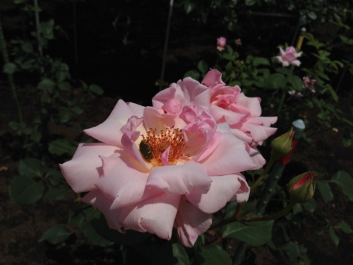 秋留台公園のローズフェスタのバラ園のバラ。マダムバタフライ。オペラ「蝶々夫人」から。夢自歌の発表会で「ある晴れた日に」に、おこがましくも挑戦しようと思ってます。花むぐり?がもぐりこんでますね。パパメイアン。素敵な花色なのですが、まだ咲いてなかった・・・左はブルームーンかな?つるピース。フレグランド・アプリコット。ジャルダン・ドゥフランス。