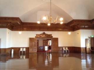 旧函館区公会堂の続き。暖炉が多いですね。御座所。大広間。2階の大広間からバルコニーに出られます。函館湾が一望。黄色と水色のコントラストが綺麗。大広間の窓。大広間のステージにはピアノも。