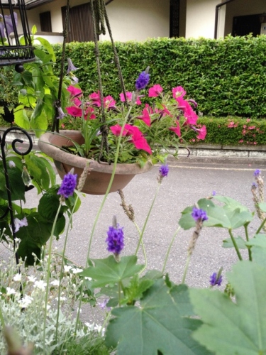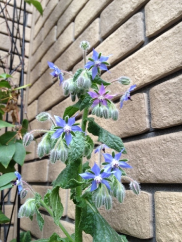 うちの花です。ボリジ。八重カンパニュラ・ラベロ。玄関前の階段に移しました。ここは咲きだした花の鉢を飾るスペースなのですよね。ホタルブクロ。駐車場の脇にこぼれ種・地下茎で増えてます。地下茎と言うより、正しくはほふく枝( 株元から横に這うように茎が伸びる)というようですが。紫はクレマチス・ロウグチ。ピンクは、ペチュニア・マジックパープル。ハーブゼラニウム・ナツメグゴールデン。アイビーゼラニウム・シュガーベビー。白露草。サルビア・コスミックブルー。