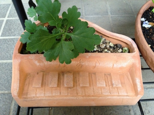菊?こぼれ種から出てきました。ピアノ型の鉢です。ベロニカ・マダムマルシア。帽子型の鉢に植えてます。ハート形のハンギングには松葉菊。下はベロニカ・ハイファイブ。リース型ハンギング。いろんな花を挿し芽してます。下はペチュニア・マジックパープル。ペチュニア・マジックパープル。忘れな草。クレマチス・デニーズダブル。白っぽい葉は、花びらになれなかったもの・・・