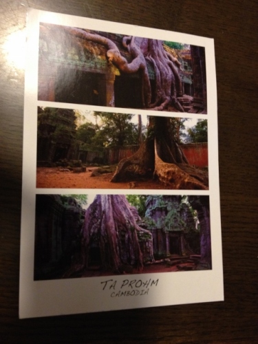 東南アジアを旅行中の次女ミンミから、カンボジアから義母に絵葉書を送ってきました。義母が喜んで、夕飯食べに来た時に持ってきて見せてくれました。カンボジアのタ・プローム遺跡の絵葉書ですね。私が行ってみたいと言ってたから、これで送ってくれたのかな?私と長女マッキーも、8月20日から27日にカンボジアに行きます!アンコールワット、タプローム、ベンメリア遺跡に行ったそう。特にベンメリアが良かったみたい。天空の城ラピュタのモデルとも言われているからね。義母も、下に感想を書き込んでましたね。