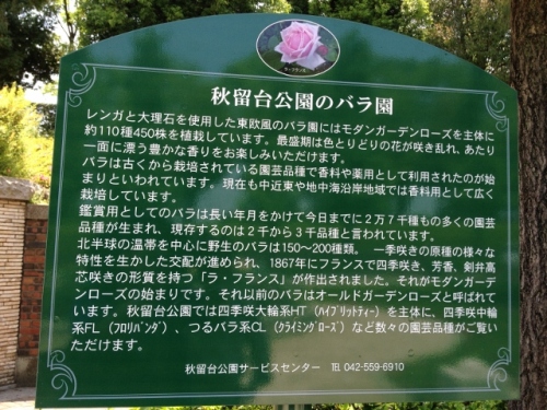 秋留台公園のローズフェスタの続きです。バラ園の案内板。ここはモダンガーデンローズ主体で、オールドローズは無いらしい。ケニギン・ベアトリックス。ブルームーン。私も以前、バラとガーデニングショーで買ってきて庭に植えたのですが、何年か咲いた後、枯れてしまった・・・いまだに、その台木の野ばらは伸びてきますが・・・恋心。ホワイトクリスマス。バーガンディ・アイスバー。アイスバーグ。人名に因んだバラたち。シャルル・ドゥ・ゴール。ビクトル・ユーゴ。プリンセス・ミチコ。うちにもプリンセス・マサコがあったのだけど、それも枯れてしまった・・・バラを枯らす名人です・・・カトリーヌ・ドゥヌーブ、クィーン・エリザベス。