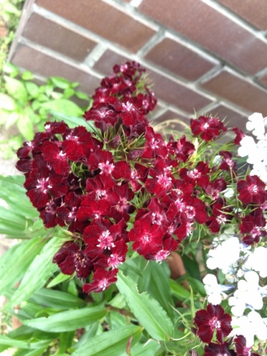 26日に撮ったうちの花です。ダイアンサス・ソーティ。真ん中の3色の小花はロベリア。アンチューサ・アズレア。ピンクは、ペンステモン・プレーリートワイライト。クレマチス・ビチセラ系ベティコーニング。香りフロックス。宿根バーベナ。リクニス。下は白蝶草。アジュガ・チョコレートチップ。