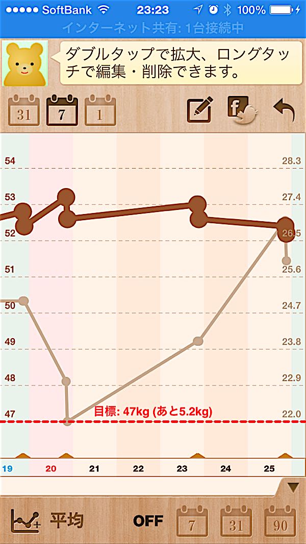 今日の体重は、夕食後、入浴前51.8kg、入浴後51.6kg。体脂肪率は、24%から23%。少しは減ってきてるから良かった。 まあこの前までリバウンドしまくりだったからなあ〜。体重のグラフです。この一週間。一週間平均で1ヶ月。3ヶ月。6ヶ月。1年。1年半くらい前から。