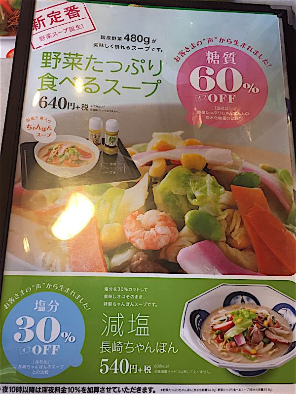 主人とリンガーハットでランチ。私は、野菜たっぷり食べるスープ。糖質60%OFFというけど、麺が無くて、野菜だけでもまだ糖質があるのですね。麺の代わりに野菜がたっぷりで、食べきれずに主人にも食べてもらった。高血圧の主人は、減塩長崎チャンポン。少し麺をもらいました。野菜に柚子胡椒ドレッシング。福岡にも柚子胡椒があったなあ。餃子を二人で一皿。長崎食べるミルクセーキ。あずきをトッピング。スープにして糖質オフしても、餃子やデザート食べたら、帳消しかな。まあ、麺はあまり好きではないので、その分好きな餃子やデザートが食べたかったのです・・・だから太るんだよね。