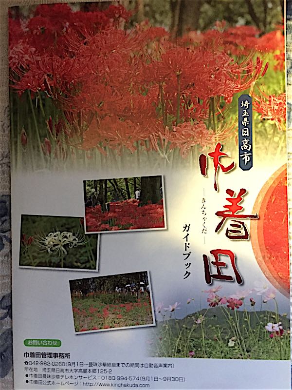 クリーニング店でもらった巾着田の曼珠沙華のパンフレットと、絵葉書。今が見頃だと思うのですが、きっと混んでるだろうなあ。