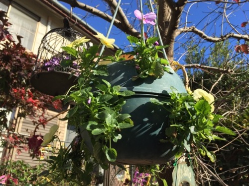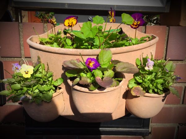 ビオラ、雪ノ下。リース型ハンギング。達磨菊、パンジーなど。シクラメン。ペンタス。多肉・虹の玉。ローズゼラニウム、ムルチコーレ。アネモネ・八重。ポーチュラカのハンギング。掃溜め菊。金のなる木、ストレプトカーパスを刺し芽しておいたら、根付いたようです。野草の小さな青い花。「名も知らぬ草もひそかに花開く」・・・コリウス。