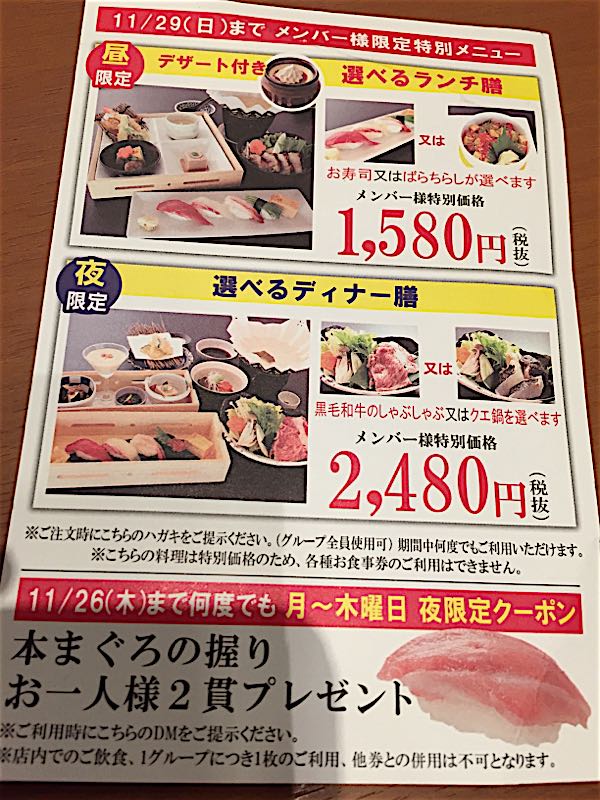 今夜は、主人が残業で夕食が要らないというので、義母と一幸で夕食を食べました。以前から割引の葉書が来ていたのですよね。私は、選べるディナー膳の九重(くえ)鍋にしました。幻の高級魚で食べたことないしね。サービスで、本マグロの中トロも1人2貫で合わせて4貫もらいました。今日まででしたね。中トロは溶けて、ご飯はしっとり。美味しかったですね。選べるディナー膳の九重鍋セット。海老・茄子・ししとうの天ぷら、鰤の照り焼き、揚げ出し大根、里芋の肉みそ、南瓜、茄子、人参、冷やし茶わん蒸し、もずく、胡麻豆腐、お寿司。義母は好物のトンカツ。イベリコ豚のミルフィーユかつ膳。アスパラ巻、大根サラダ、ご飯、味噌汁。私もアスパラ巻を一つもらい、代わりに義母にもいろいろ少しずつ食べてもらいました。義母が「大根サラダが辛い」と言うのですが、大根自体の辛味かと思ったら、店員さんが、山葵風味のドレッシングだからお取替えしますと言ってくれた。青紫蘇とシーザーとどちらにします?と訊かれ、シーザーと答えてました。シーザーなら辛くなくて食べられたよう。私も少しもらいました。それでも食べきれずにパックをもらって持ち帰ってました。うちに夕食を食べに来る時も、いつも残りを持ち帰っているので。さすがの私もお腹いっぱいで、別腹のデザートも食べられなかったですね。時間も9時頃と遅かったから。義母を車で送り、帰ってから実家に電話。
