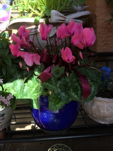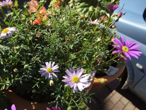 ピンクのウィンターコスモス。黄色いウィンターコスモス。パンジー、姫小菊。姫小菊。姫小菊。球根ベゴニア・フォーチュン。ビオラのハンギング。ガーデンシクラメン、ストック、カルーナ。バードバスも置いてます。ガーデンシクラメン。ストック。カルーナ。変わり咲きカリブラコア・カリビアーノ・ダブルラベンダー。変わり咲きカリブラコア・カリビアーノ。エンジェルレース、コリウス、ネメシア・メロウ。エンジェルレース。ネメシア・メロウ。コリウス。ビオラのハンギングボール。