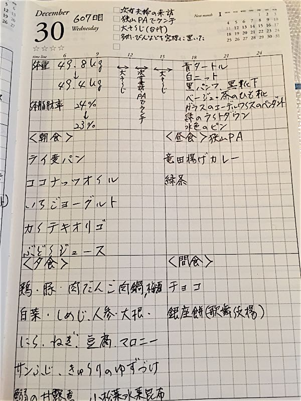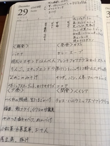 昨夜写したのですが、主人の来年の1年の計・・・ 「夢を見よう、したいことをしよう」「私たちも、そうしていいってこと?」と訊いたら、自分だけだそう・・・まあ、私や子ども達は言われずとも、したいことをしてるか?・・主人は、今度の3月で再雇用5年も終わり、本当の意味の定年退職なので、来年度から自由になるのですよね。何をするつもりなのかな?・・・