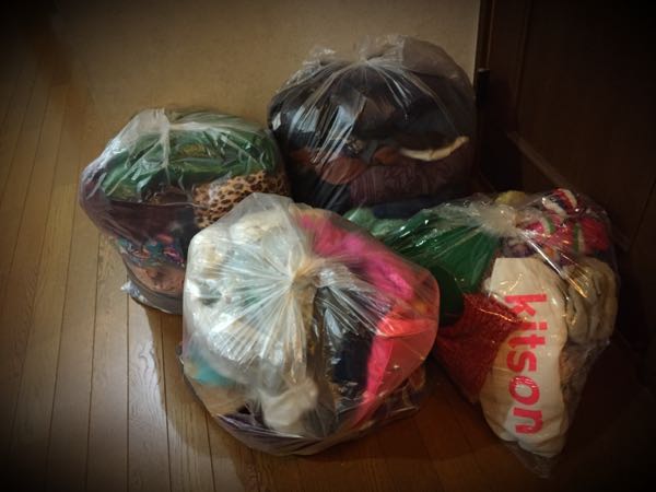 先日娘たちが断捨離した洋服を、今朝ゴミ捨て場に運ぶのを手伝うと主人と約束したのに、寝坊して手伝えなかった・・・もちろんリサイクルの日なのですが、今日が今年最後なのです。