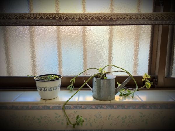 次女ミンミ夫婦が帰ってから、また大掃除を再開。台所をやってから、多肉など窓際に置きました。徒長してるので、少し切り戻して挿し芽したりもしました。この鉢にも挿し芽。瓶や花瓶を並べてみました。瓶だけでは淋しいので、青いガラス球を入れてみたりして・・・左の醤油瓶にも入れてみた方が良かったかな?・・・今は陶器の醤油瓶を使ってるので、ガラスの醤油瓶は使ってないのです・・・籠や、ホーローの水切り籠を棚に置いて使ってます。木の調味料だなには、青の花柄シートを貼って。元に戻したところ。換気扇などを掃除して、シートを付け替えました。ちょうどシートも青の花柄で、タイルシールと合ってます。カラトリーの吊り具も、またミニハンガーに掛けて・・・カラトリーやフライパン、パン、瓶の飾りを、ドライハーブと一緒に掛けてます。