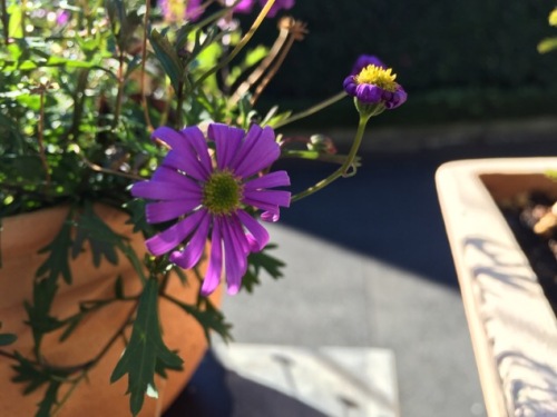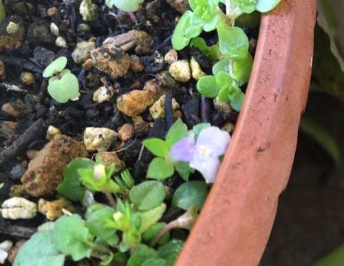 鷺ゴケ。掃溜め菊。イングリッシュダブルプリムローズ・ブルーサファイア。縁側の軒下でも弱ってたので、玄関の軒下に移しました。日本カタクリの球根を埋めた鉢に、松葉菊を植えてます。出てくるかな?・・・万両。
