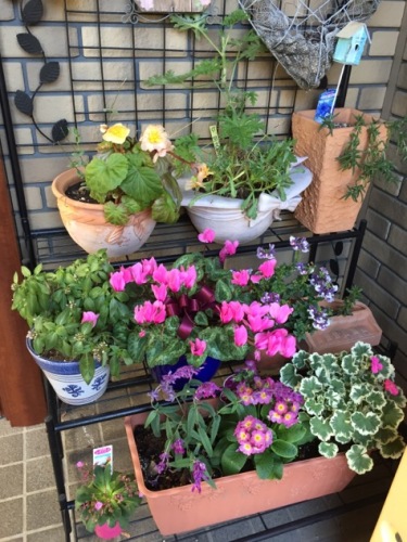 姫小菊。ラナンキュラス。パンジー?、ビオラ?・・・微妙ですよね・・・八重アネモネ・オーロラ。ウィンターコスモス。パンジー、白妙菊。ガーデンシクラメン。左から、ガーデンシクラメン、ストック、カルーナ、秋海棠の種。ガーデンシクラメン。ストック。