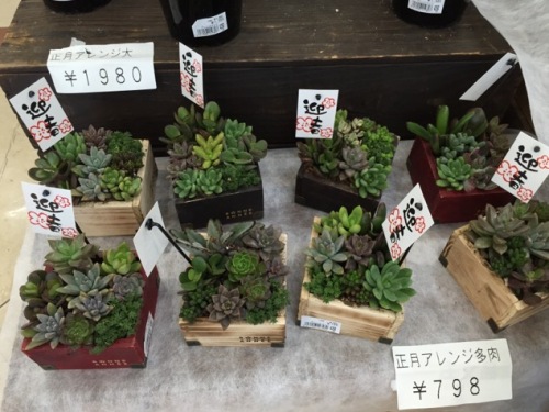 ベイシアで多肉が枡に入った正月アレンジも売ってましたね。一昨日、カランコエとプリムラジュリアンの鉢が入った籠の正月アレンジを買ったので、もういいかな。
