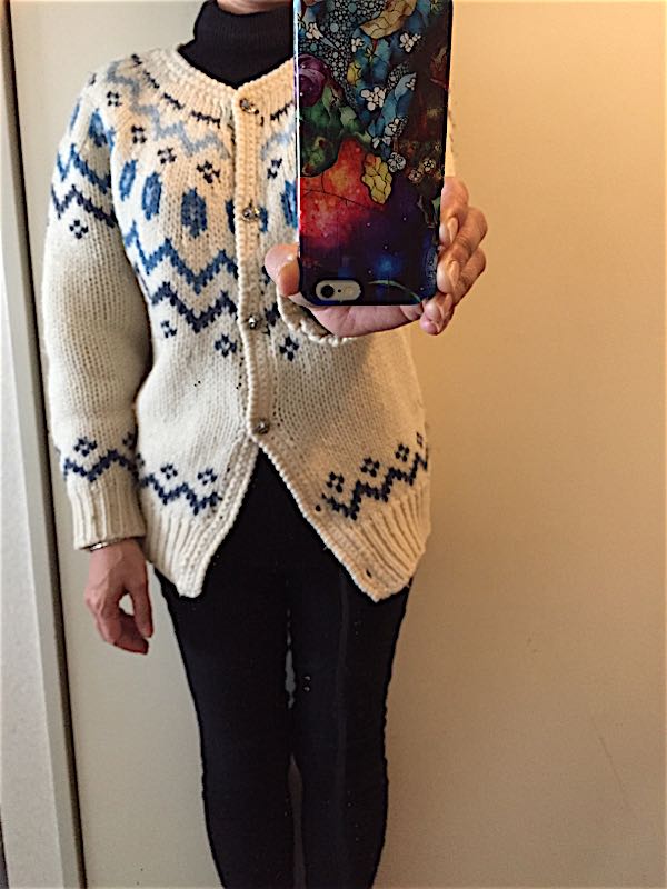 今日は、福島旅行2日目、ルネサンス棚倉、母畑で、黒タートル、白・青のカーディガン、黒パンツ、黒靴下、ファー付き黒ショートブーツ、ワインレッドのダウン。