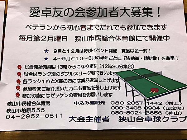 西武地区の卓球大会・混合ダブルスに参加しました。私はくじ引きでAブロック、Yさんとペアになりました。Oさん・Nさんペアには、最初2セット取ったのに3セット取られて負けてしまいました、、、Tさん・Sさんペアには、1セットだけ取れました。このペアは優勝したから、1セットだけでも頑張った。デュースも2回あったしね。Oさん、Nさんペアには、3セット連取で勝ち、3位になりました。Bブロック。Cブロック。各ブロックの1位、2位、3位、4位でリーグ線。3位リーグ。Kさん・Oさんペアには3セット連取で勝ちました。Hさん・Kさんペアには、フルセットでようやく勝てました!ペアのYさんのスマッシュがよく決まり、ありがたかったです。私もなんとか繋いだり、時々?スマッシュできたかな。3位リーグの優勝で、卓球靴下を賞品に貰いました。割と靴下溜まってきたなあ。冬は寒くて卓球靴下ではなく、温かい靴下を履いてしまうのですよね。