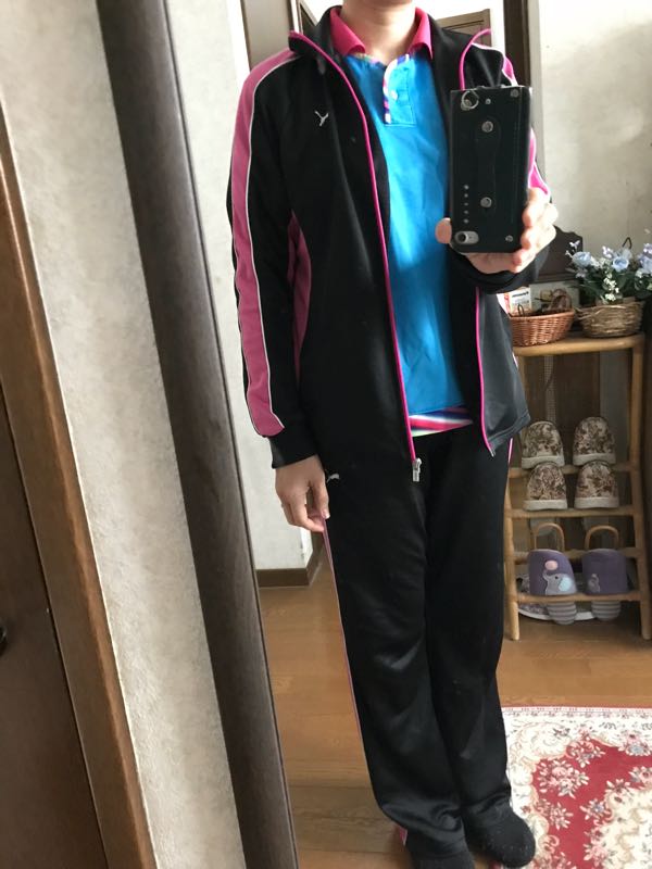 今日は、酵素ダイエット71日目、愛卓友の会卓球大会。紫・黄色・黒の卓球ウェア、黒・赤のハーフパンツ、黒のスポーツスパッツ、。黒・ピンクのジャージ上下、黒の紐靴、ワインレッドのダウン。