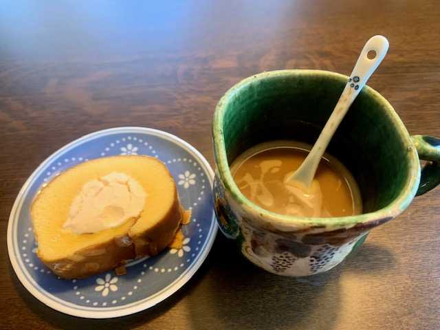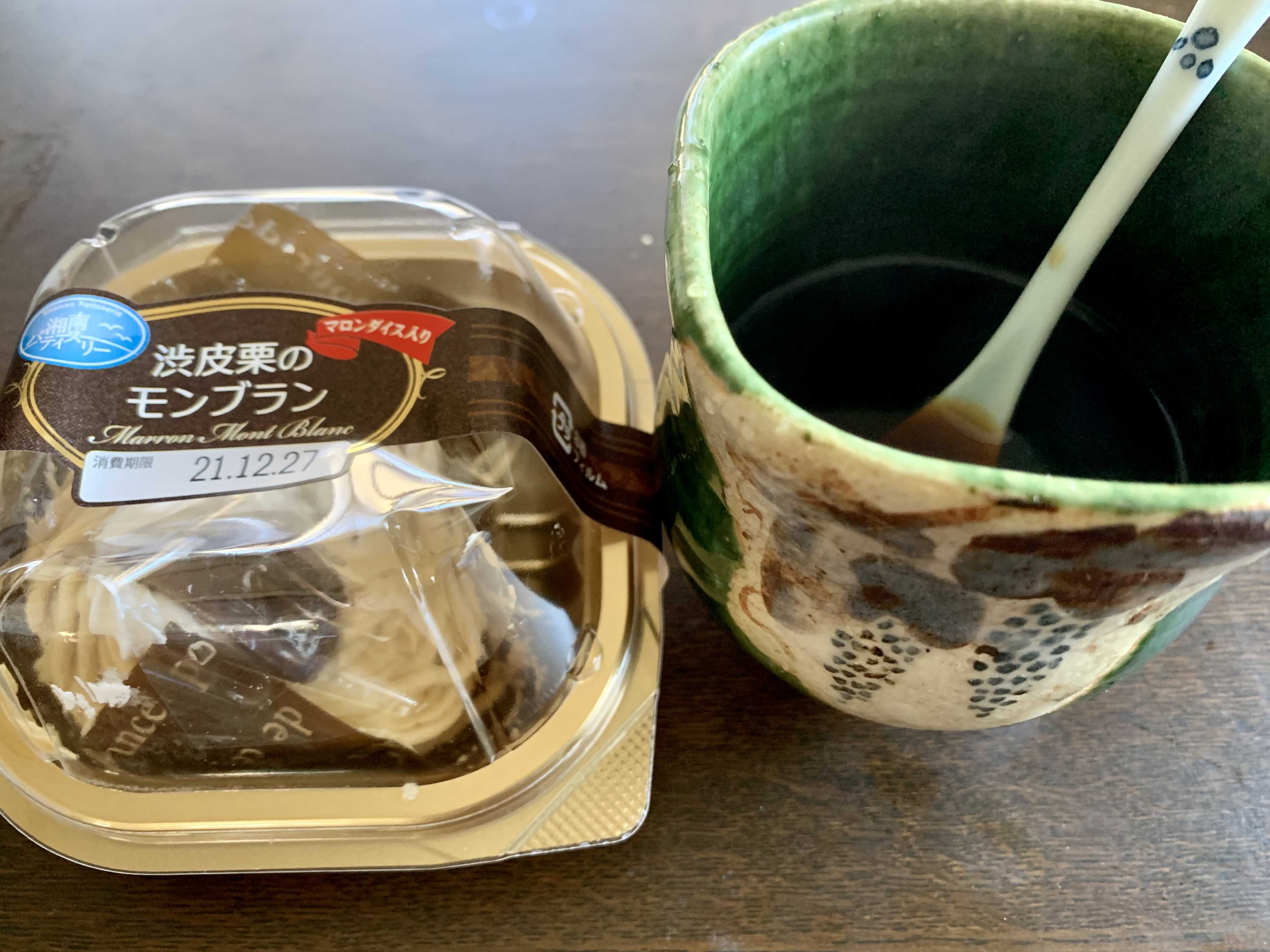 おやつは、渋皮栗のモンブラン、コーヒー。