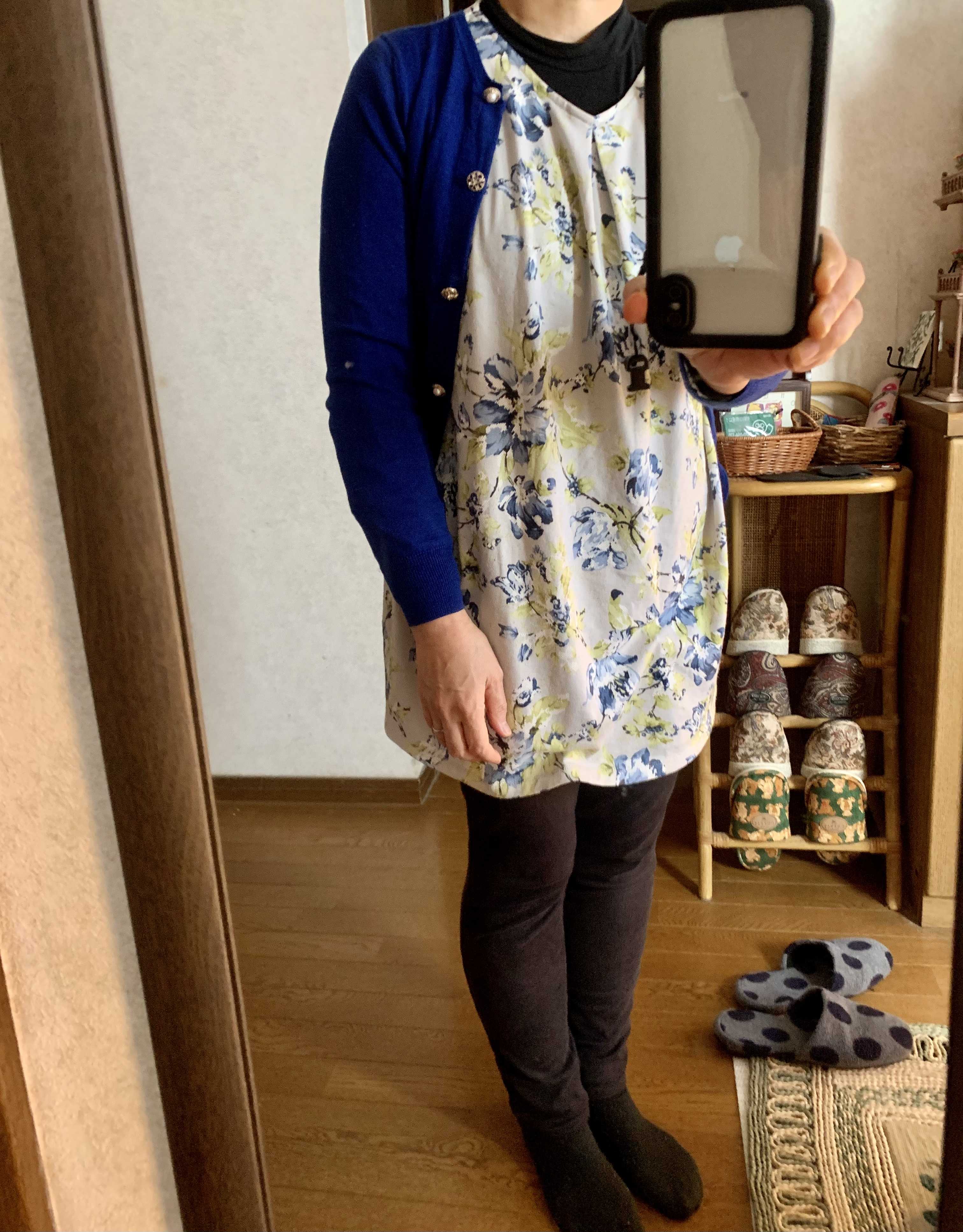 ダイエット食事日記5492日、大掃除、整形外科。花の撮影。黒タートル、グレー・青・緑の花柄チュニック、青カーディガン、黒パンツ、黒靴下、紺ブーツ。青紫のフリースジャケット。