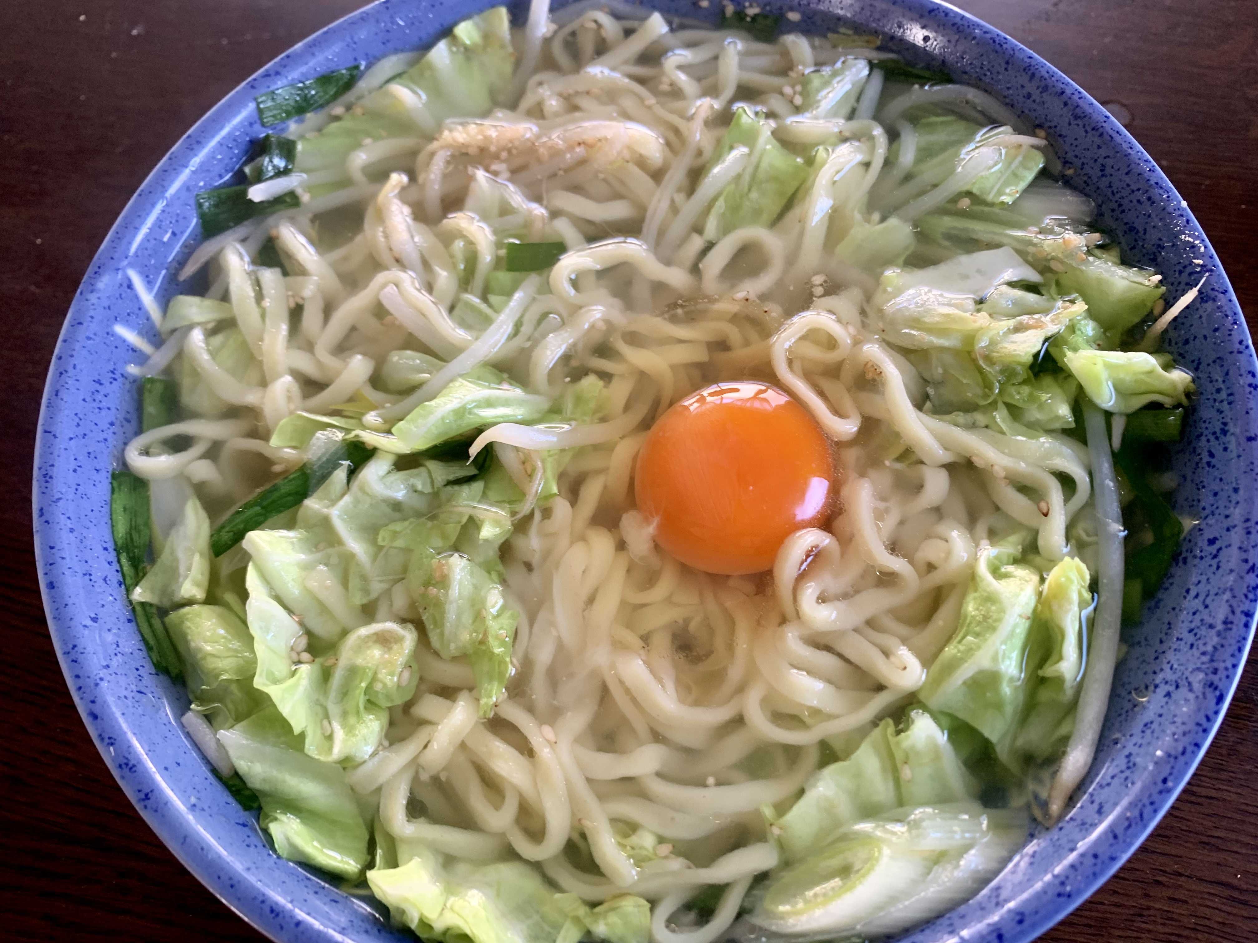 昼食は、タンメン(卵・キャベツ・ニラ・もやし)。