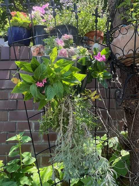 花苗の植え付けをしました。楽天市場、スーパービバホーム、カインズで購入した花苗です。スリット入りのハンギングバスケットへの植え付け。テイカカズラ黄金。ニーレンベルギア・オーガスタブルー。ペンタス。八重ニチニチソウ・サニープリンセス・ブルー。八重の栄養系ペチュニア・ベルチャーム・ウェンディ。栄養系とは、種子ではなく、挿し木から育てるものらしい。だから、切り戻しされたりしてるのかな。ハンギングバスケットで土も少ないので、これも挿し芽して増やそうかな。花首が折れてしまったので、水盆に浮かべました。朝霧草。根元が茶色くなってしまうけど、新芽は白い。下部に植えて垂れ下げました。スィートアリッサム。ビオラなどと寄せ植えしてましたが、これだけまた再利用。咲くかな?ワイヤープランツの挿し芽。根付くかな。クリーピングタイムの挿し芽。ハンギングバスケット。朝霧草など無理に垂れ下げなくても良かったかなw額縁プランター。ビオラ、スィートアリッサムを寄せ植えしてましたが、一新しました。まだ咲いてないから寂しいけどね。左から、タピアン、ポーチュラカ・蛇の目レッド&イエロー、フロックス・シアウッドパープル、オレガノ・ケントビューティフロックス・シアウッドパープル。オレガノ・ケントビューティー。ポーチュラカ・ジャノメ・レッド&イエロー。ポーチュラカの上部に、タピアンも挿し芽。エボルブルス・ブルーマイマインド。ハンギングバスケットに植え付け。玄関の軒下です。葡萄柄のハンギングフックに吊り下げました。スーパートレニア・カタリーナ・ブルーリバー。枯れたハナミズキに下げました。折れないといいけどね。リシマキア・リッキー。プラチーナ。リーフ柄のプランターに。カラーリーフの寄せ植えです。ゲラニウム・プラセンセダークレーター。銅色の葉が素敵。暑さにも、ゼラニウムの中では強い方らしい。スタジオビーの春祭りで買った回転木馬のグレーの鉢。銅色の葉が映えるかな。リナム・ナーボネンス。縄柄の鉢に。シレネ・ピンクパンサー。こぼれ種から。葉牡丹・F1フェザー・レッド。ビオラと寄せ植えにしてたけど、再利用。バラ柄のプランターに植え付け。2本の葉牡丹にシレネ・ピンクパンサーが守られてるみたいwルナレモン・愛のかんざし。斑入り金魚草・彩葉と寄せ植えしてましたが、日陰になったり、勢いに負けたのか、枯れそうになってたので、救い出してきました。やはり1鉢に1植物の方がいいのかな。縄柄の小鉢に。復活するかな?アスチルベ・アメジスト。今日着いたのですが、茎が折れ曲がってる。まあ、このまま咲けばいいのですが。オリーブ柄の鉢に植え付け。ヘリアンセマム・ロックローズピンク。青い鉢に植え付け。宿根朝顔・マジックブルー。タピアン・ラベンダー。コリウス。バラ柄の鉢に。楽天市場のハッピーガーデンで購入した花苗。今日届きました。アガパンサス。地植えしたいけど、その場所が無いのですよね。縦縞の鉢に植え付け。