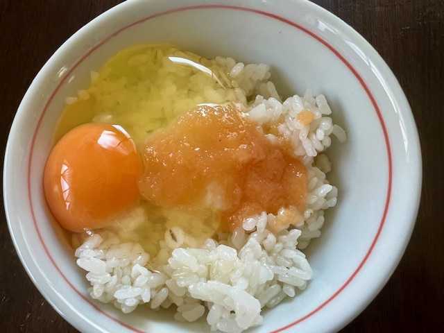 昼食は、卵かけご飯・明太子、ヨーグルト。
