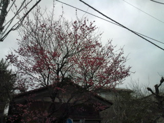 友達の家から常盤台の駅に帰る途中見かけた紅梅です。