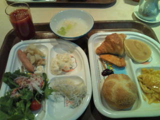 朝食は和洋中のバイキングで、中華粥など食べました。