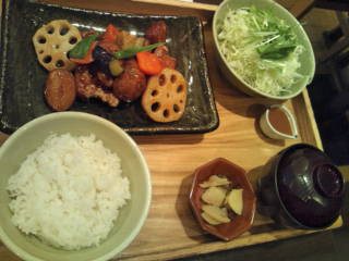 義母は鶏と野菜の黒酢あんかけ定食です。