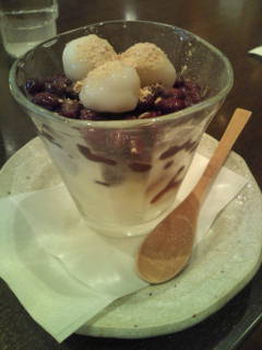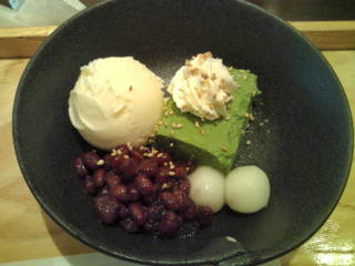 デザートに私は抹茶のムースにバニラアイス、小豆、白玉。