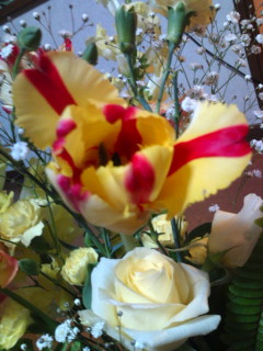 黄色と赤の縞のチューリップはミンミが毒々しいと言ってました。