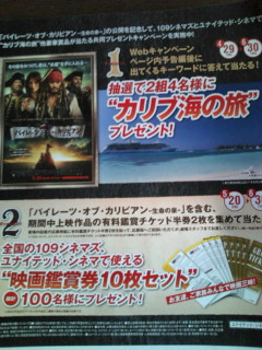 映画の半券を二枚付けて送ると、抽選で、カリブ海旅行か、