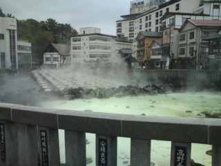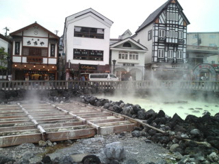湯畑では、観光客が集まって、写真撮ったりしてるのだから、
