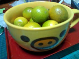 リラックマの黄色いトリのスープカップに入れた金柑。