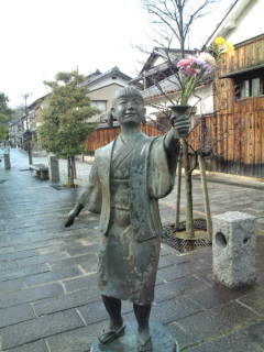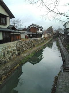 背割排水:通りに面する町屋が背と背を合わせる部分には「背割り排水」「背割りの溝」と呼ばれる水路が通り、八幡堀につながっています。この溝が整備されているのは、主に町西半部の土地の低い地域です。下水道の役割を果たすと共に、城下町建設以前、沼沢地だったこの地域の排水に役立てられたと考えられます。竹管を使った古式水道の整備と共に、豊臣秀次(近江八幡開町の祖。豊臣秀吉の甥)の町作りの計画性が感じられる施設です。