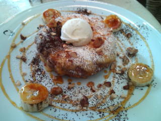 カスタードシューにバニラアイス、バナナにカラメル、ナッツです。