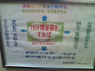 運転ミスを防ぐためにも、15分ほど昼寝をした方がいいとのこと。