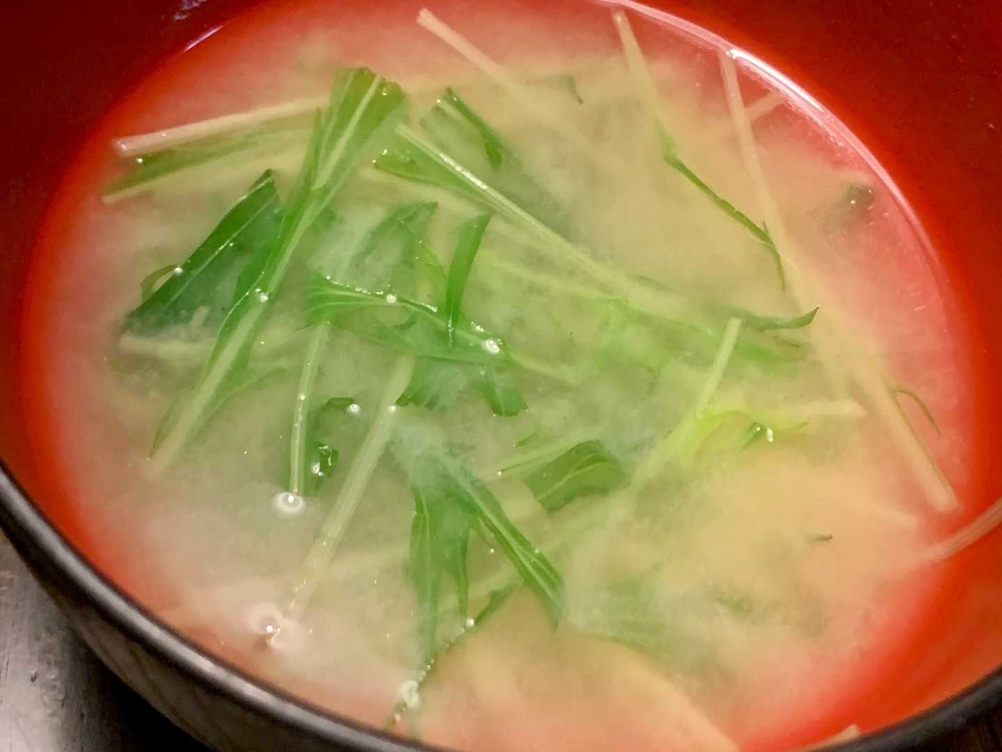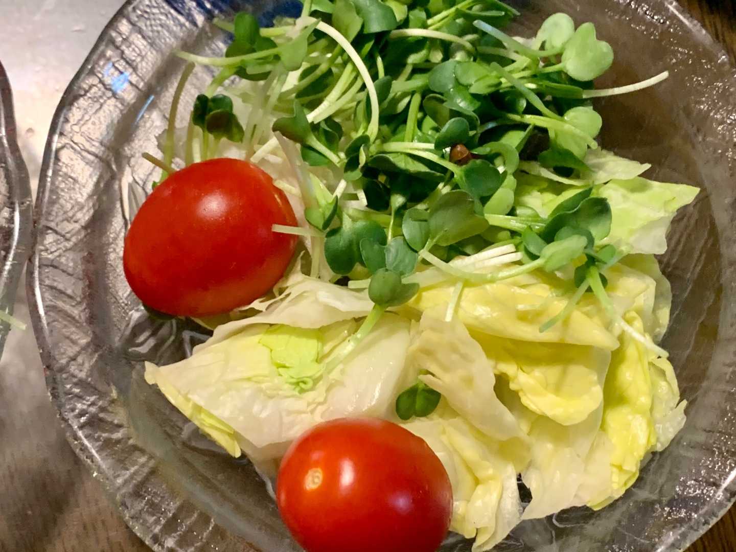 レタス・貝割れ・ミニトマトアイコのサラダ。