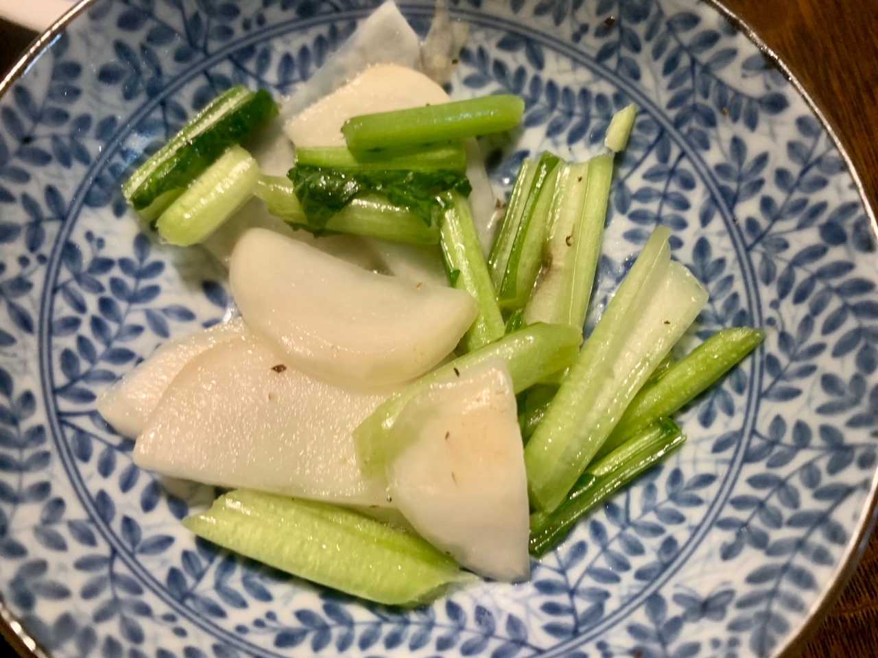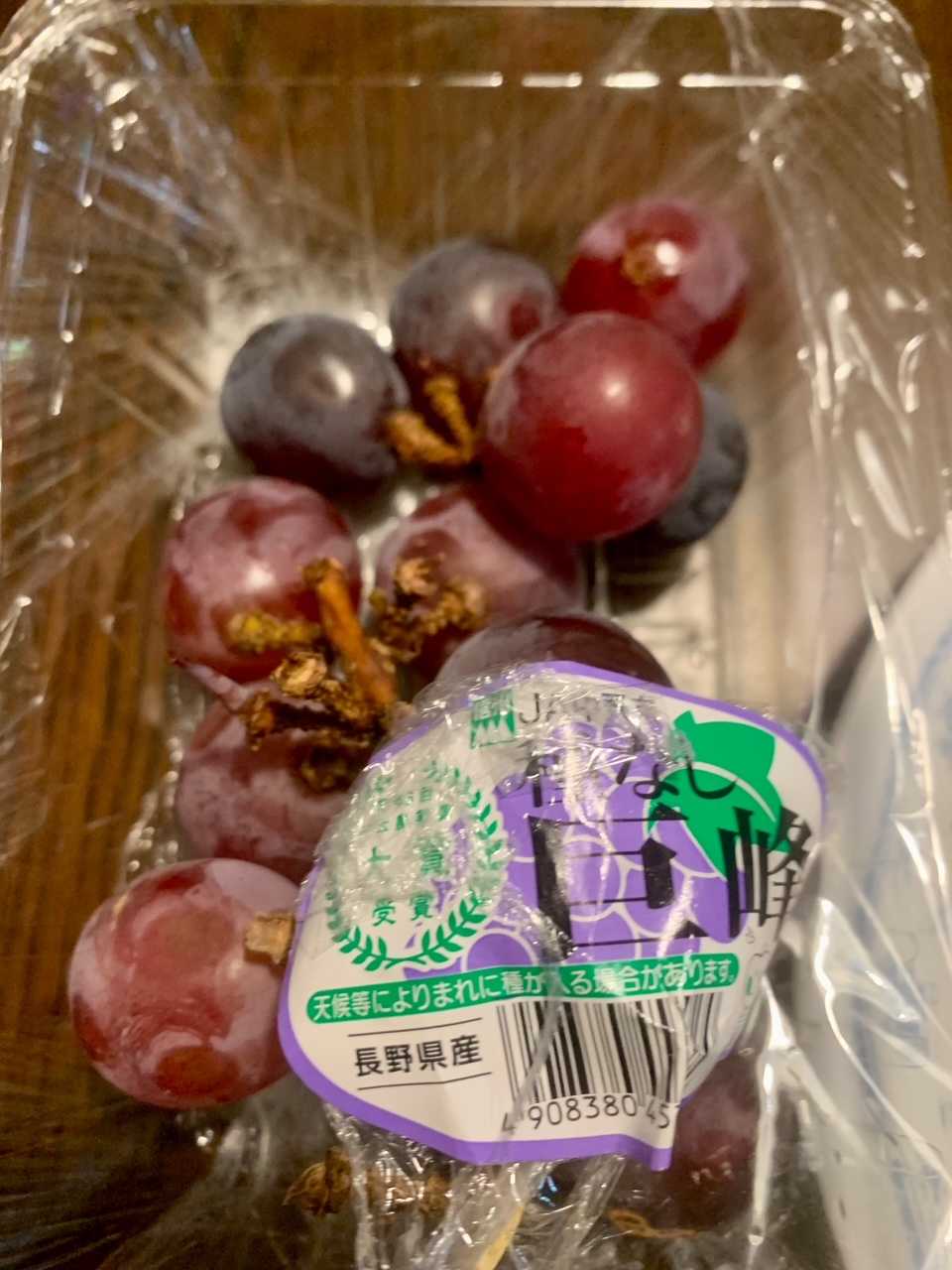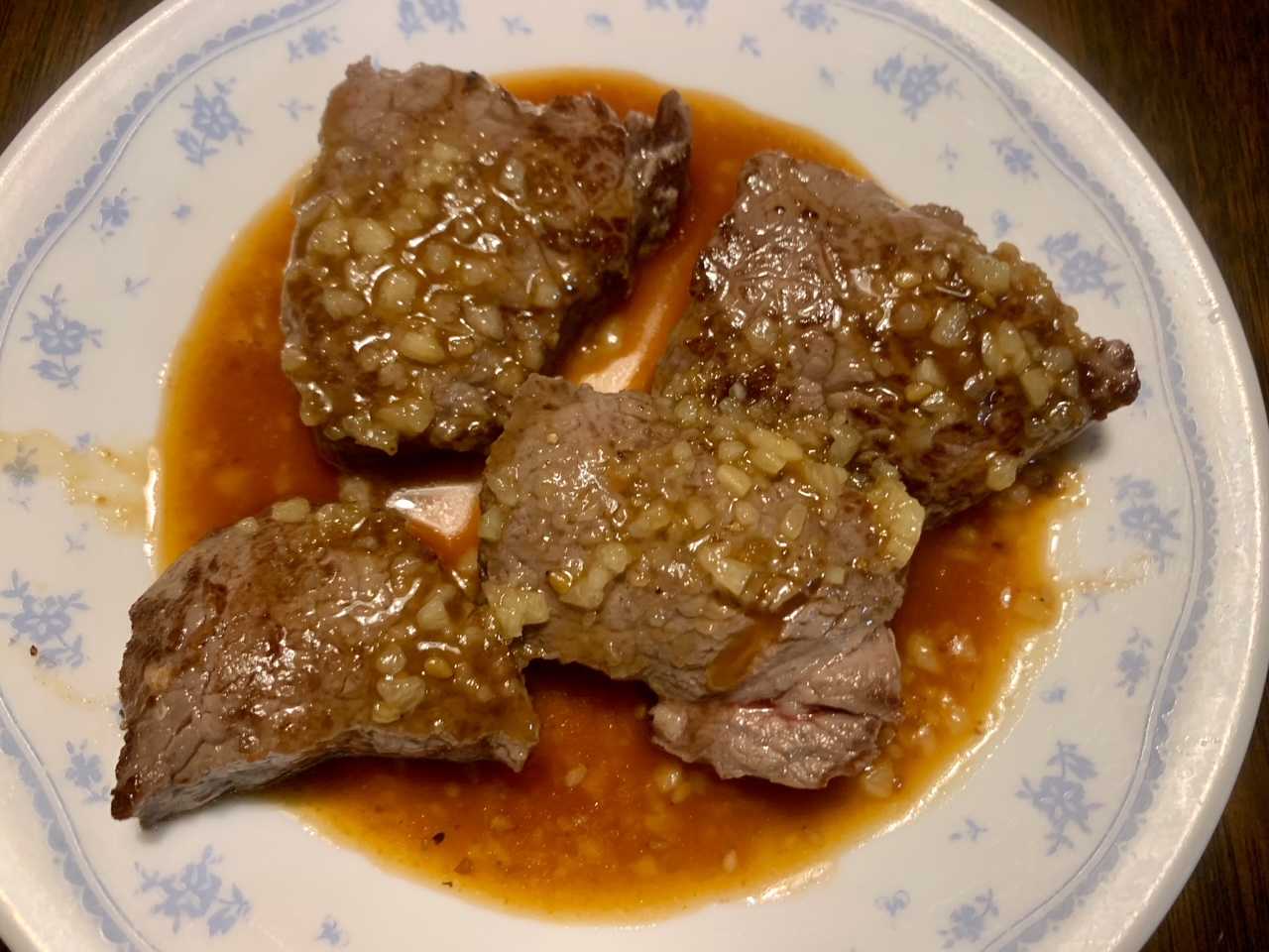 夕食は、和牛モモステーキ・ガーリックソース、ほうれん草・人参の白和え、蕪のマリネ、豆腐・ネギの味噌汁、種無し巨峰。
