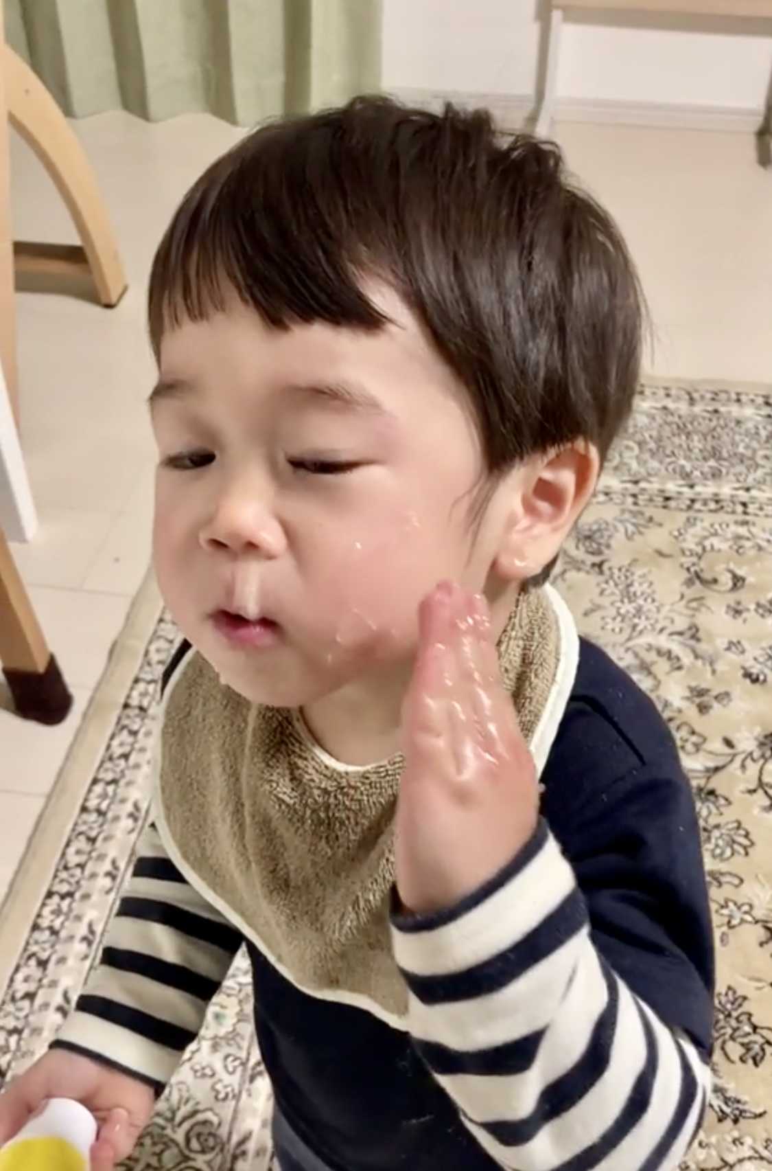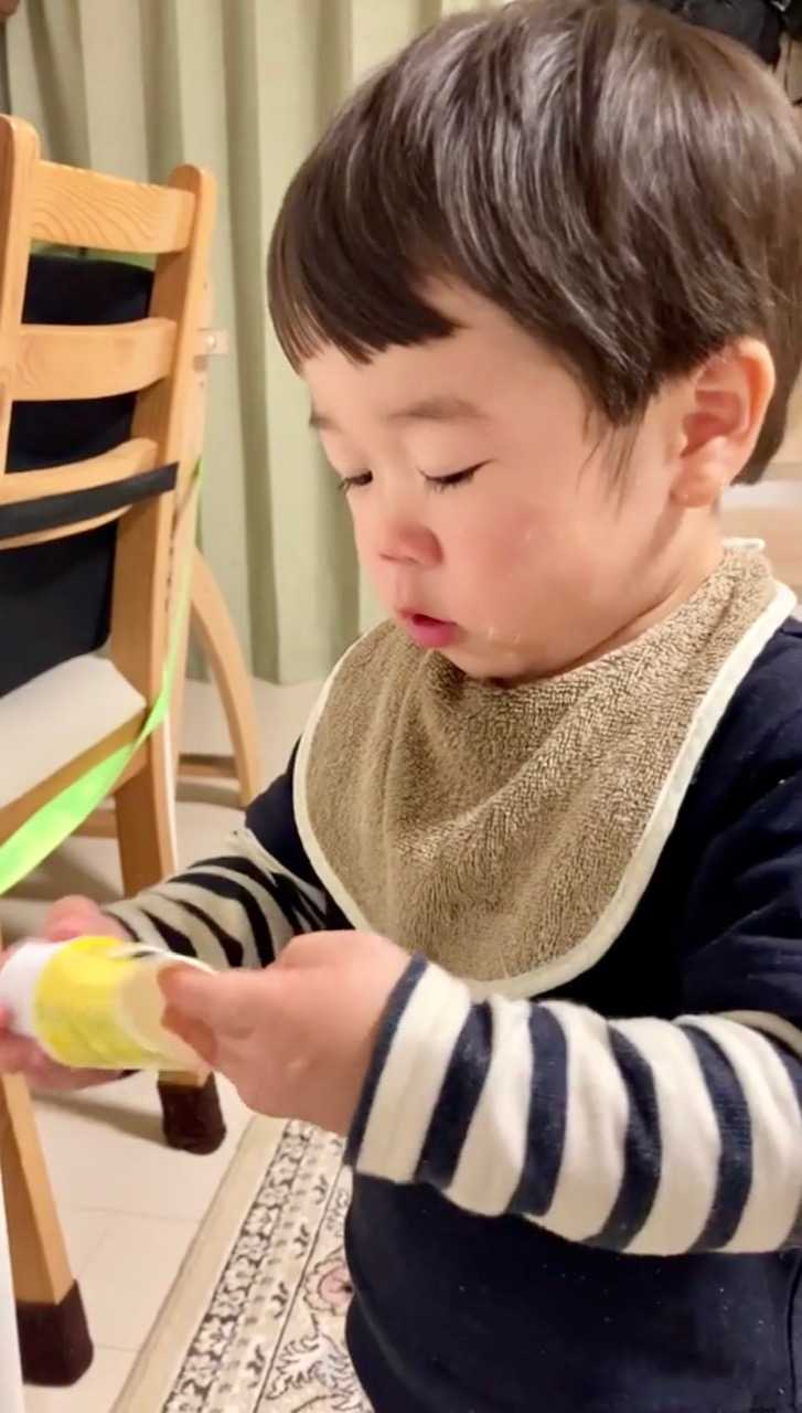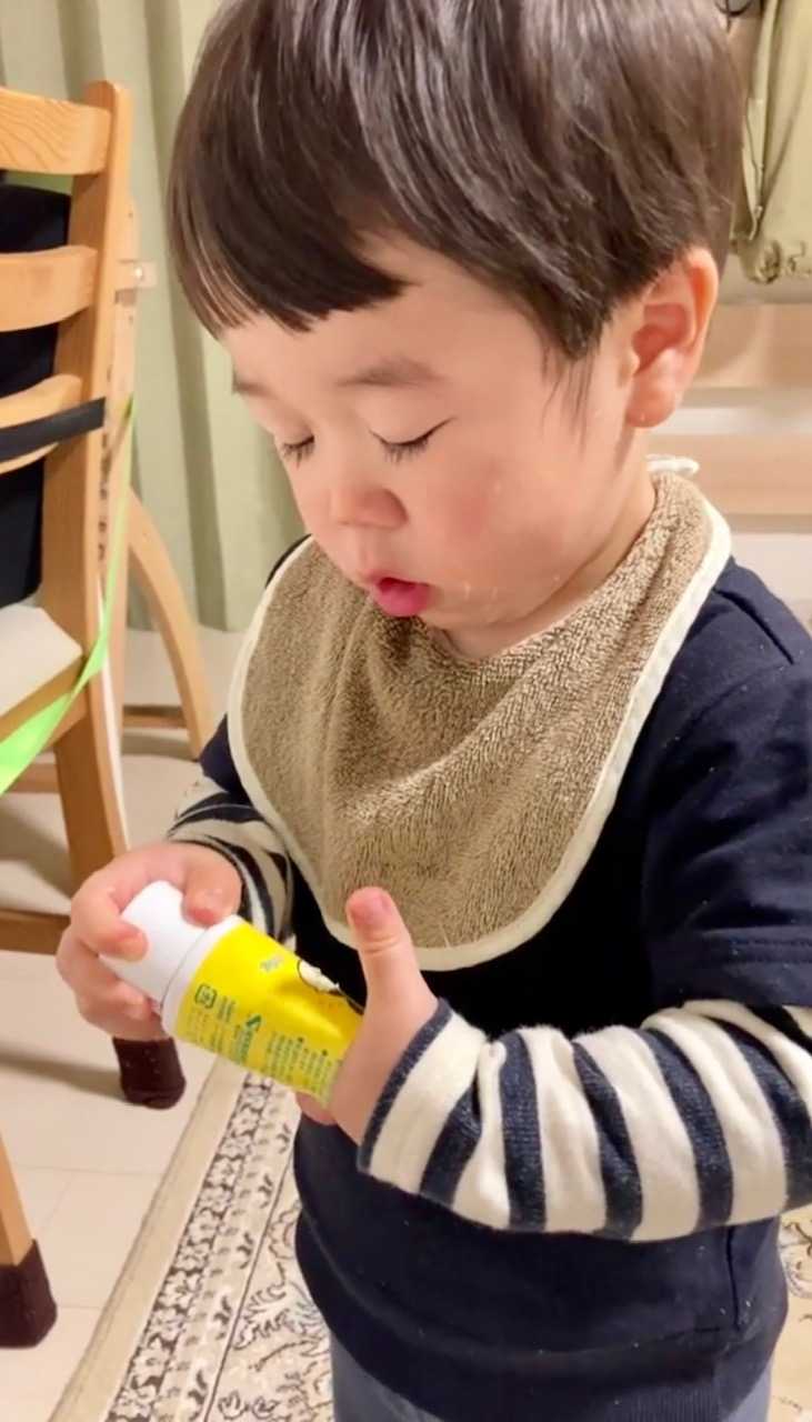 夕食作っててあれ、兄いないな〜と思ったら静かにワセリン塗り塗りしてました。半分に切ってギリギリまで使おうとしてたのです。ほっぺがよだれかぶれでカサカサしててよく塗ってるからわかったんだね。