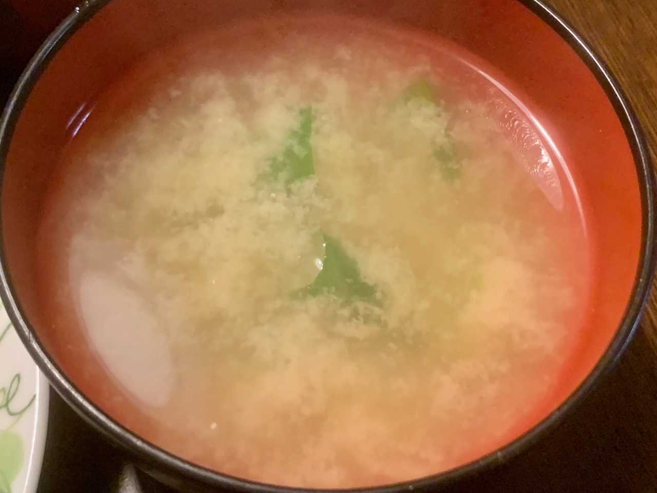 出汁が効いたお味噌汁が美味しい。お代わり自由なので、半分おかわりしました。