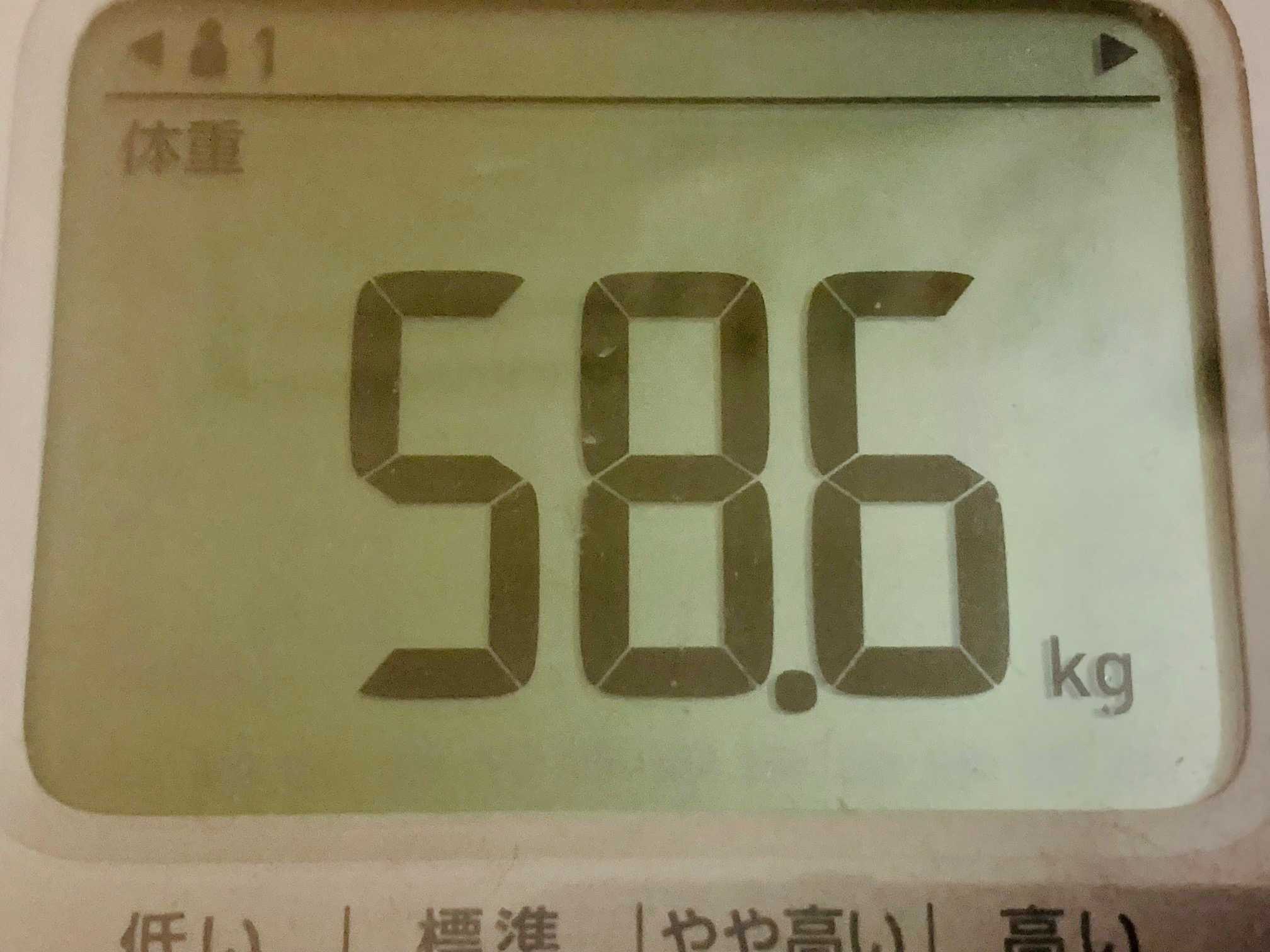 体重は、夕食後・入浴前58.6kg。2日前から1kgも増えてしまった、、、