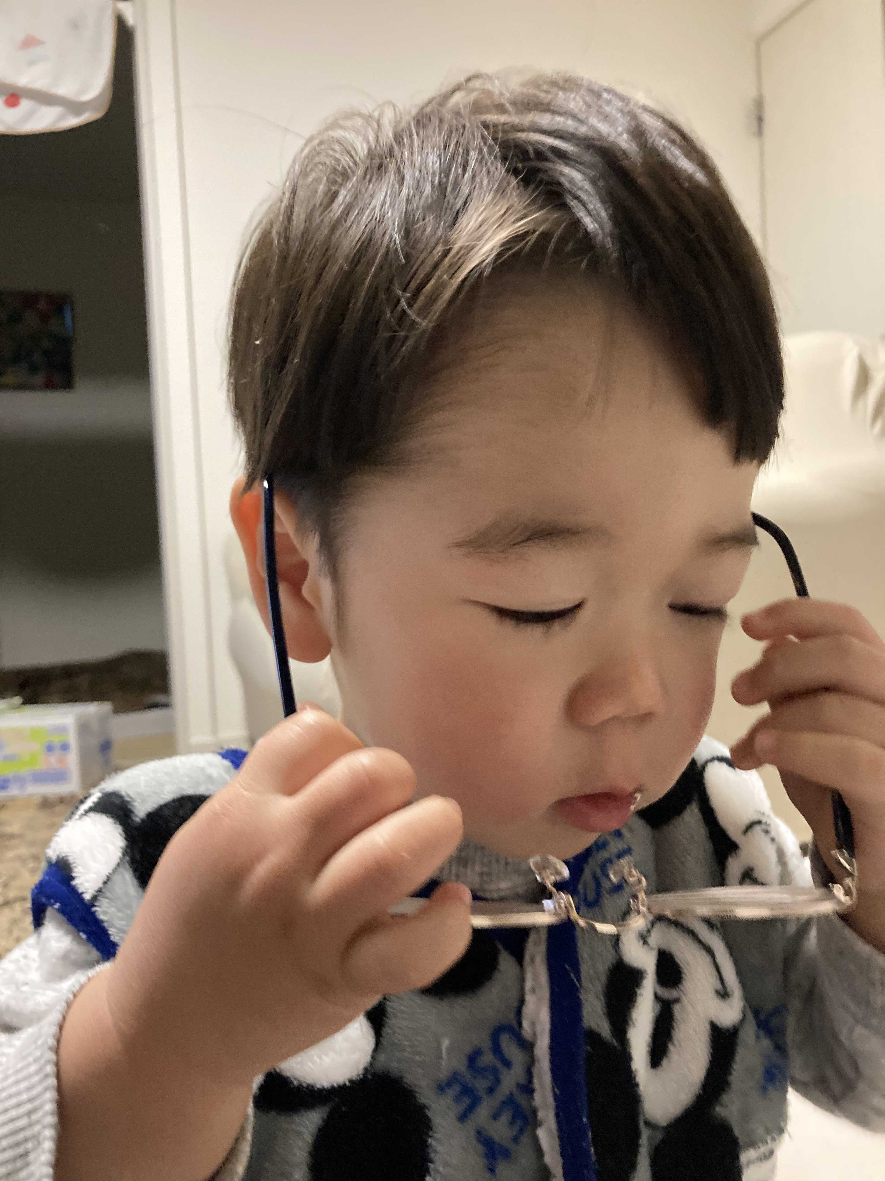 兄にメガネ取られました。ちゃんと掛け方知ってるんだね〜